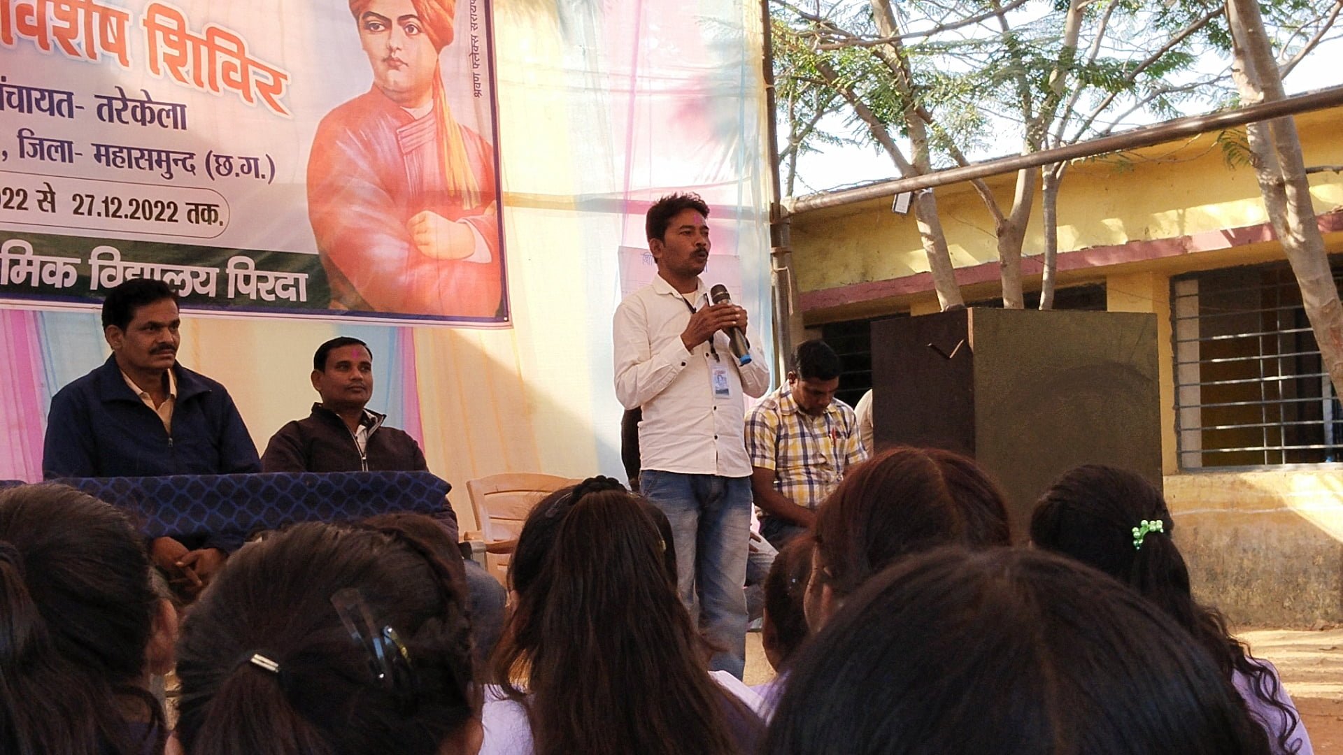 शासकीय उच्चतर माध्यमिक विद्यालय पिरदा के राष्ट्रीय सेवा योजना इकाई द्वारा ग्राम पंचायत /ग्राम तरेकेला में शिविर २१ से प्रारम्भ द्वितीय दिवस सार्वजनिक स्थानों पर साफ -सफाई । मध्यान्ह भोजन के बाद बौद्धिक चर्चा में अपना दल एस के अनूसूचित जाति प्रकोष्ठ के प्रदेश प्रभारी , छत्तीसगढ़ संयृक्त किसान मोर्चा के महासमुंद जिला सदस्य दासरथी चौहान ने स्वयं सेवी छात्र -छात्राओं से कहा कि इसका नाम ही सेवा योजना है ।सेवा सबसे कठिन कार्य है ।सेवक सुख चाहे तो सेवा धर्म इसकी इजाजत नहीं देता । यहां इसी को सिखने आये हो । यहां आने का उद्देश्य पवित्र होना चाहिए।।इसके लिए बुद्ध से संबंधित एक कहानी प्रस्तुत किया। जिसमें ।स्रावस्ती में एक ब्राह्मण जिसका नाम वक्कली था ।वह दीक्षित हुआ और वह महिनों बुद्ध के सामने बैठ कर प्रवचन सुनता था।कभी फूल भेंट कर देता ।उसके बारे में भिक्षुओं ने बुद्ध से शिकायत करते हुए कहा कि वक्कली कुछ करता नहीं और बैठकर आपको देखते रहता है ।एक दिन बुद्ध ने वक्कली को बुलाया और कहा कि हे भिक्षु तुम बाहर -बाहर कब तक देखोगे ।और उसे संघ से निकाल दिया।तब वह दुःखी हो वहां से आत्मघात करने एक पर्वत से कुदना ही चाहा कि बुद्ध ने हाथ पकड़ लिया और उसे रोक लिया।और तबसे उस चोंटी को नृत्य चोंटी कहा जाता है । वक्कली खुश हो नाचा था ।यह कथा इसलिए कहा ताकि शिविर में केवल घुमने नहीं बल्कि यहां स्वामी विवेकानंद से प्रेरणा लेकर अपने जीवन को एक उच्च स्तर पर ले जाये। वक्कली गलत उद्देश्य ले बुद्ध के पास गया ।जिसके पास गया वह बुद्ध सच्चा ।कभी -कभी ग़लत आदमी गलत कारण लेकर सच्चा आदमी के पास पहुंच जाता है । यह कथा मैंने मोरारी बापू से सुना है ।ऐसेही आप सभी स्वयं सेवी यहां आकर अनुशासन,सेवा और कर्तव्य बोध लेकर जाईये।तभी यहां आना सार्थक है।